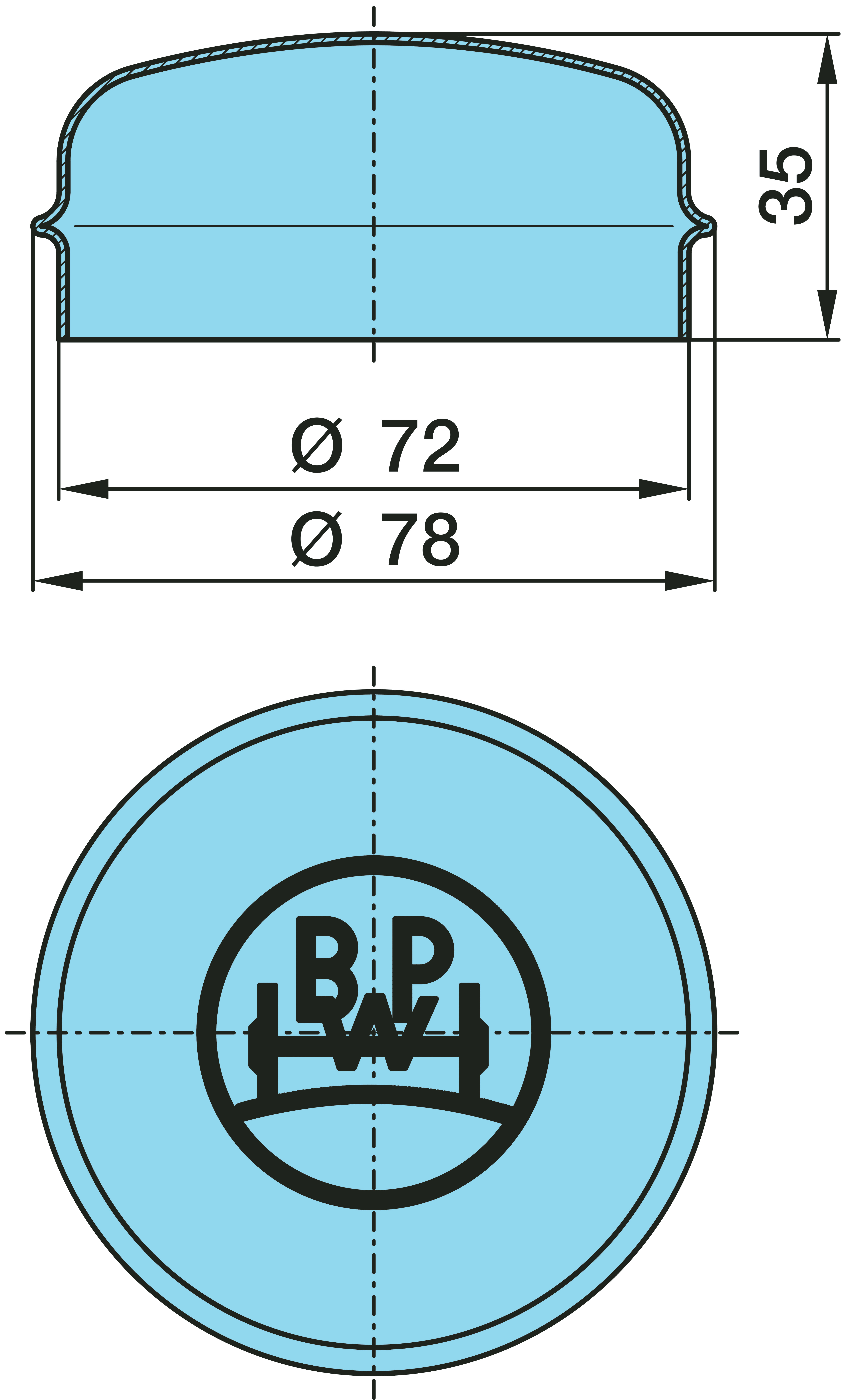 03.211.05.06.0 dangtelis1 Stebulės dangtelis d72
