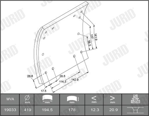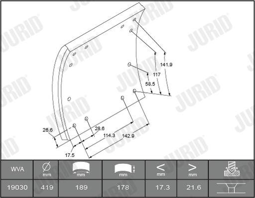1903001230 stabdžių antdėklo rinkinys, būgninis stabdys1 Stabdžių antdėklai WVA 19030