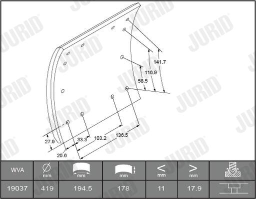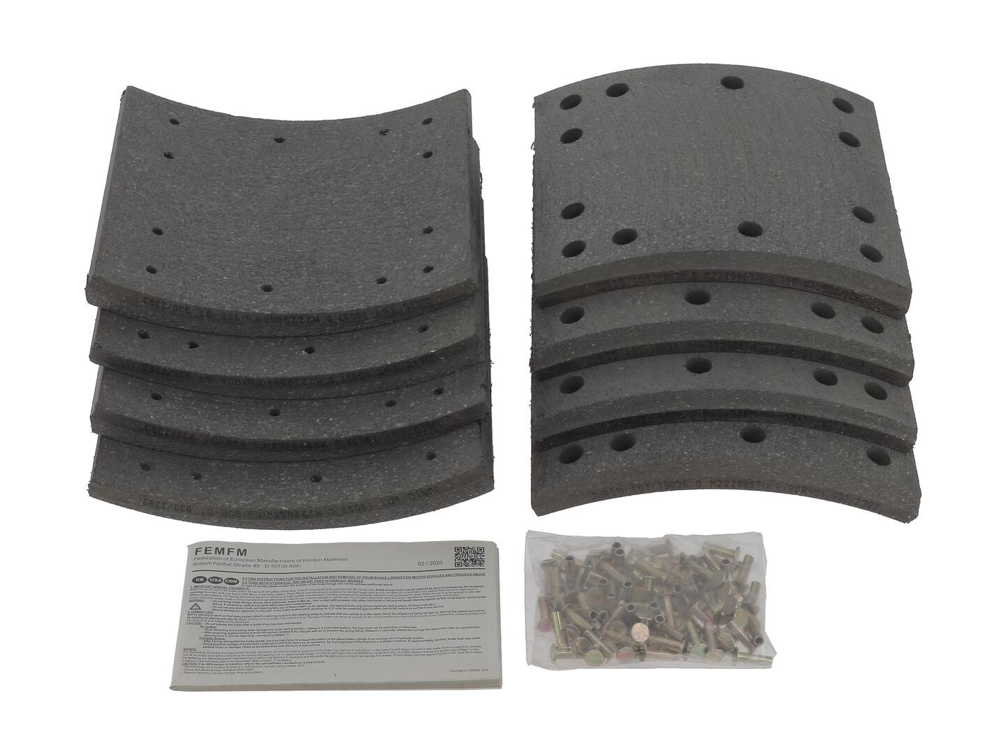 1903601070 stabdžių antdėklo rinkinys, būgninis stabdys1 Stabdžių antdėklai FRUEHAUF, R.O.R., SAF. Kniedži