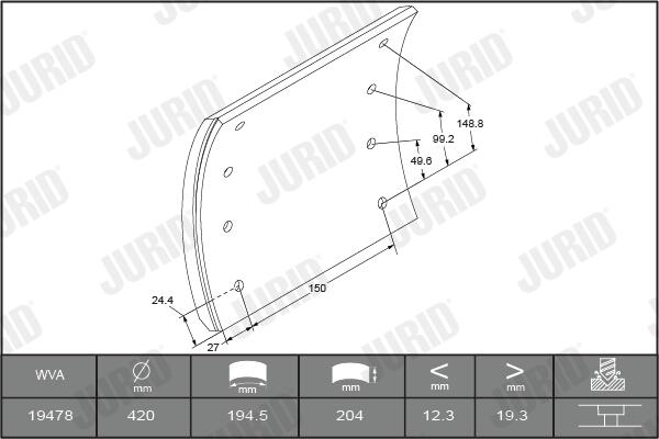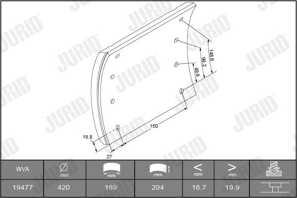 1947701070 stabdžių antdėklo rinkinys, būgninis stabdys1 Brake Lining Kit, drum brake WVA 19477