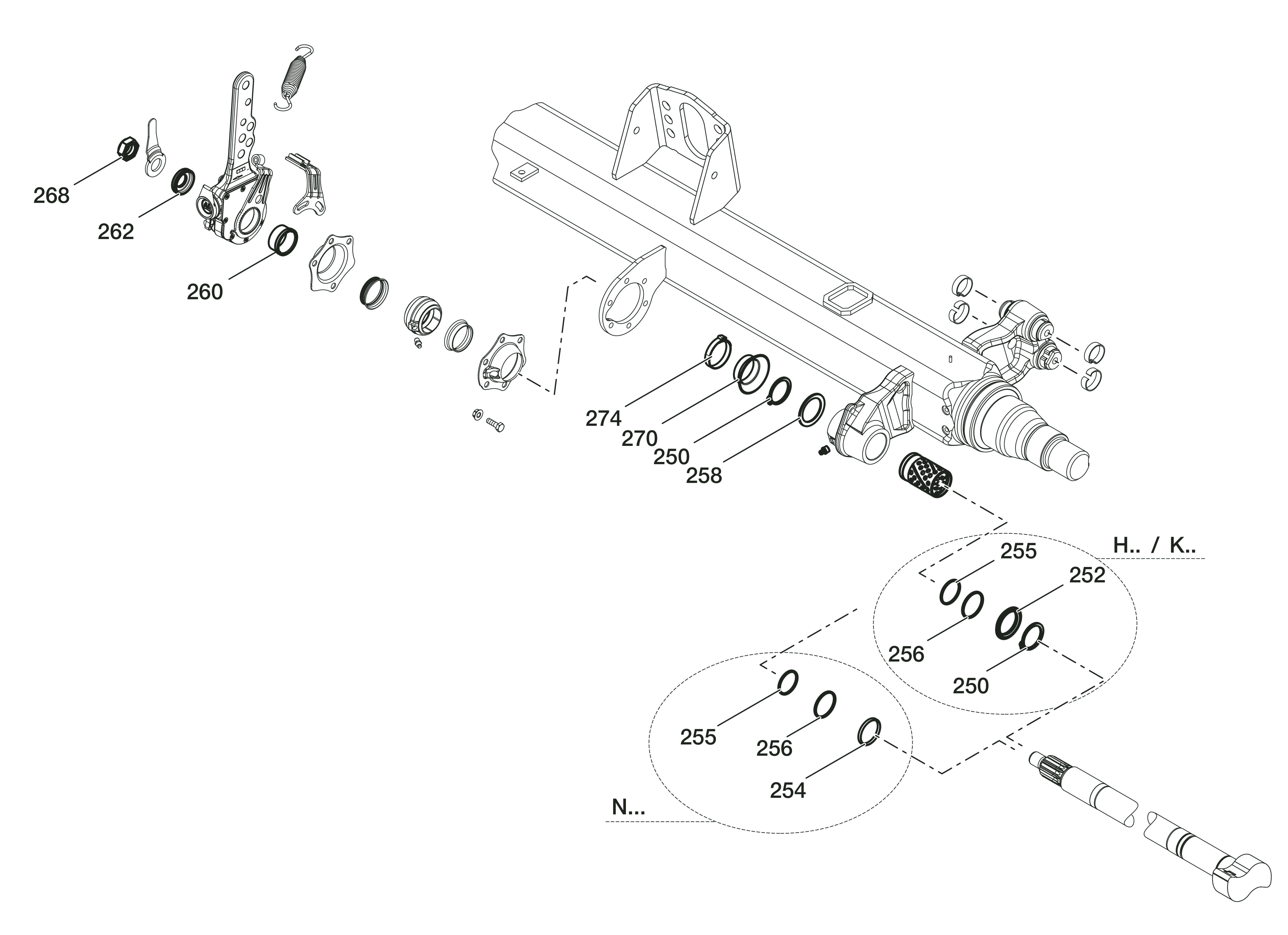09.801.08.86.0 remonto komplektas, skėčiamojo kumštelio velenas1 Stabdžių veleno remontinis komplektas HW SN420/360/300LS